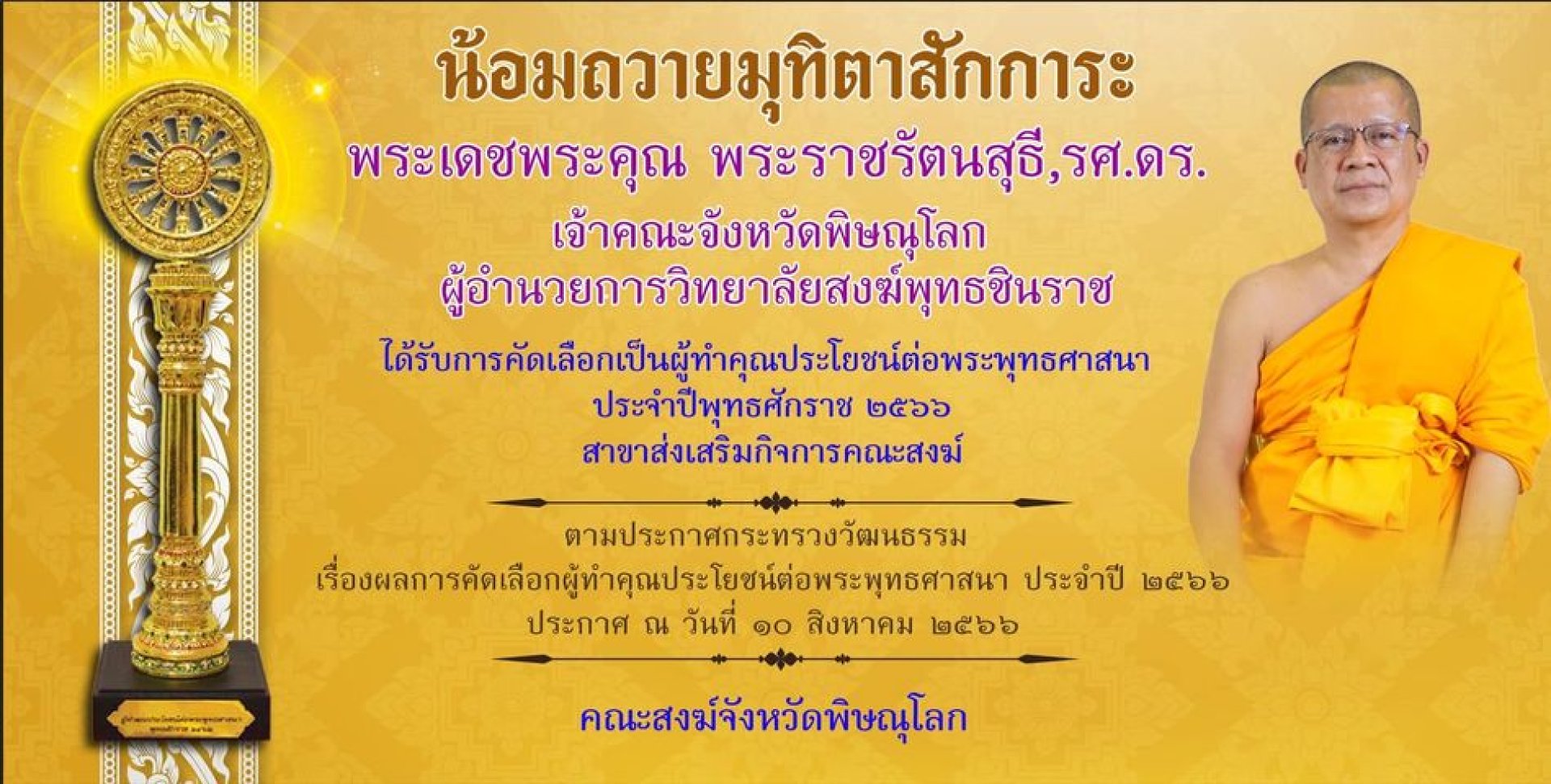 ได้รับการคัดเลือกเป็นผู้ทำคุณประโยชน์ต่อพระพุทธศาสนา ประจำปี 2566 สาขาส่งเสริมกิจการคณะสงฆ์